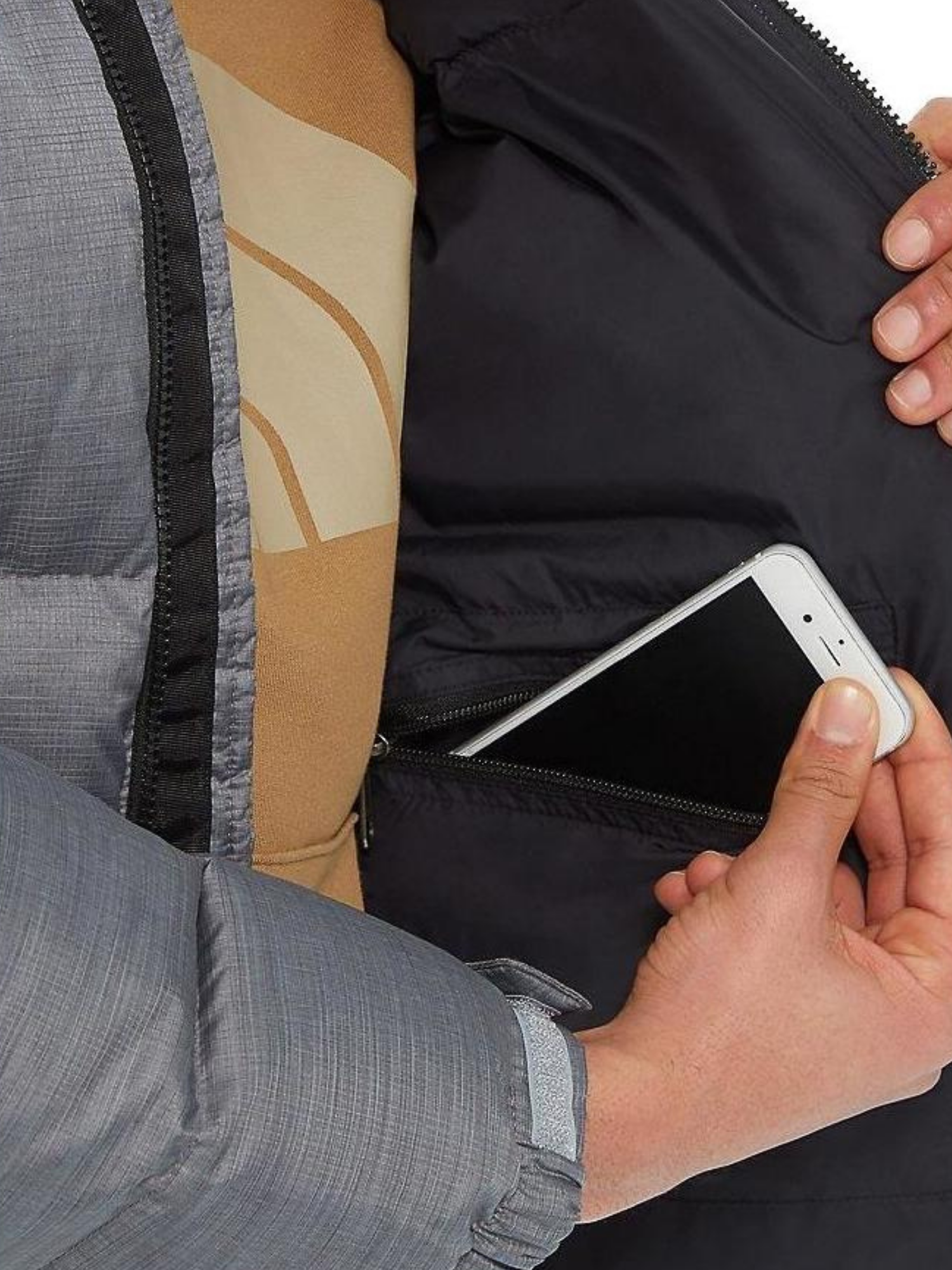 Puños elásticos y cierre frontal: completo con solapa interior para mayor aislamiento.