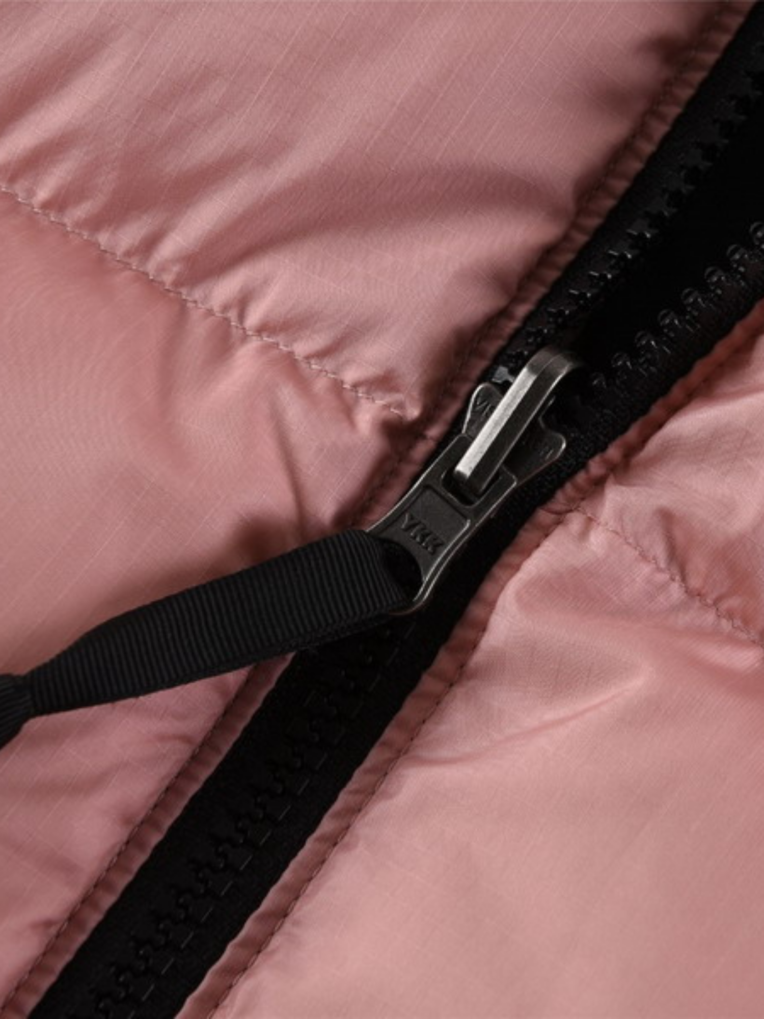 Diseño funcional: Capucha plegable integrada en el cuello alto, ajustable según condiciones climáticas.