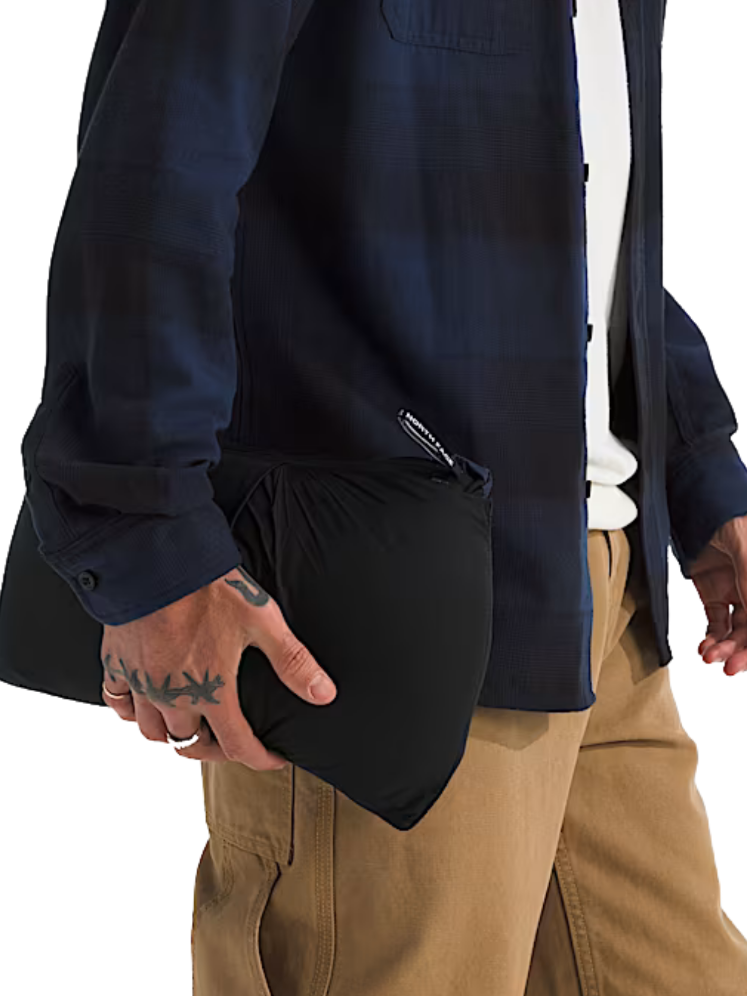 Portabilidad: La casaca se guarda dentro de su propio bolsillo para facilitar el transporte.