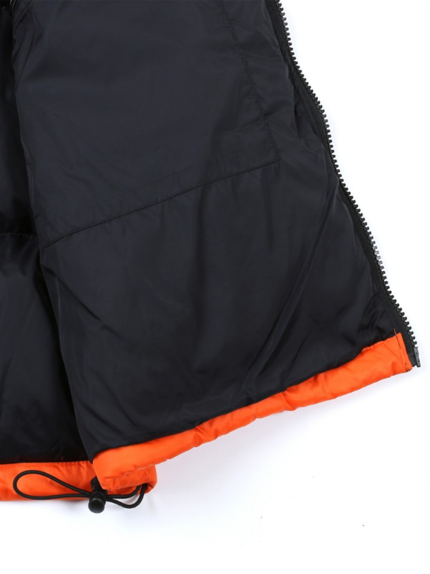 Diseño funcional: Capucha plegable integrada en el cuello alto, ajustable según condiciones climáticas.