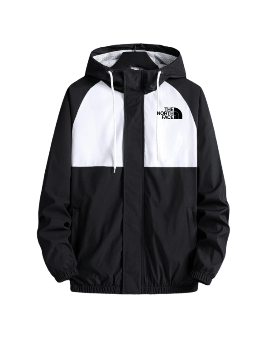 Pensado para quienes enfrentan el día a día sin importar el clima, este cortavientos combina un diseño moderno en blanco y negro con materiales técnicos ligeros y funcionales.